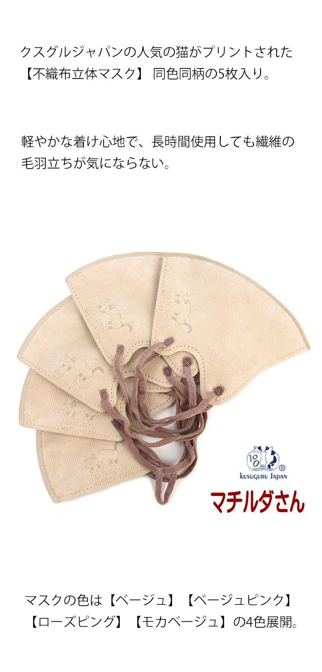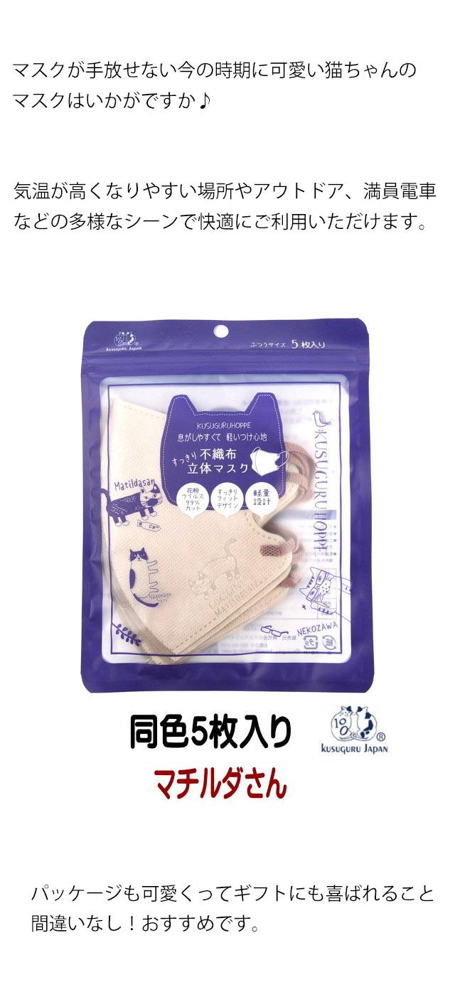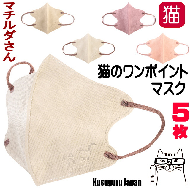 クスグルジャパンの人気の猫がプリントされた 【不織布立体マスク】 同色同柄の5枚入り。