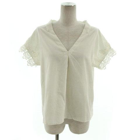 【中古】ナノユニバース nano BASE カットソー Vネック 半袖 袖レース切替 スリット テールカット アイボリー F
