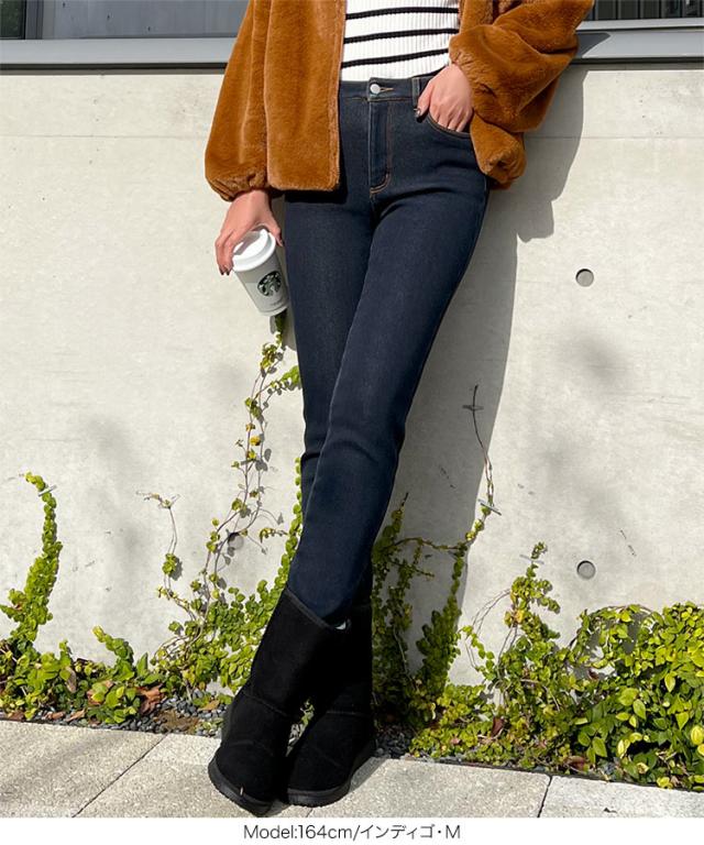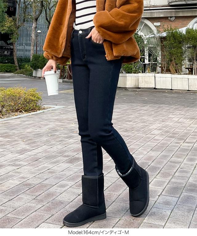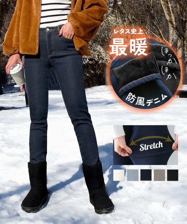 [ 裏起毛 ] 防風裏ファーデニムパンツ M3837 入荷済 レディース ロング丈 ジーンズ ズボン 裏ボア 裏ファー 極暖 防寒 ロングパンツ 暖パン あったかグッズ あったか 暖かい