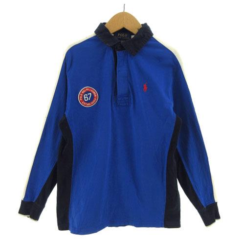 【中古】ポロ ラルフローレン POLO RALPH LAUREN ポロシャツ 長袖 ポニー刺繍 ワッペン ブルー 青 白 黒 M 10-12