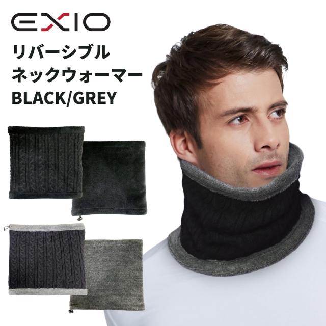 【送料無料】EXIO ネックウォーマー リバーシブル フェイスマスク スヌード メンズ レディース 男女兼用 フリーサイズ 2色 ブラック グレー フリース ニット 防寒 マフラー スポーツ ゴルフ 野球 サッカー男性用 女性用 おしゃれ スノーボードネコポス