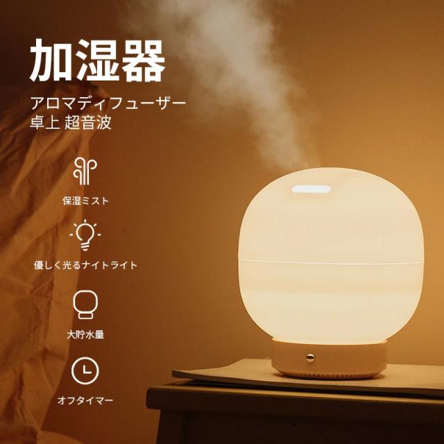 関連キーワード:アロマディフューザー付き加湿器(超音波)、卓上タイプ、超音波、保湿ミスト、優しく光るナイトライト、大貯水量、オフタイマー