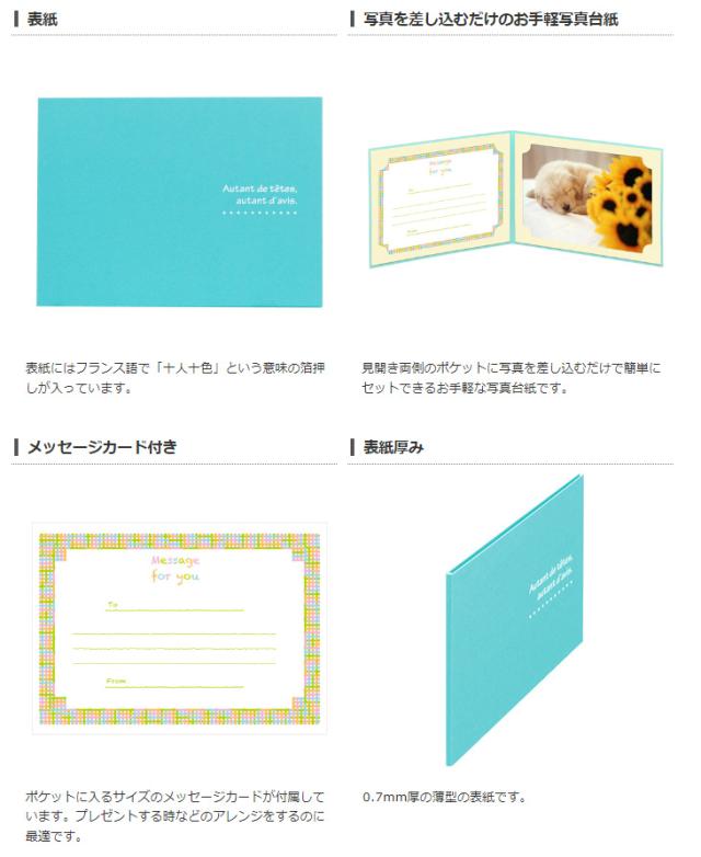 手軽に使える写真台紙です。ポケットに写真を差し込むだけなので、入れ替えも簡単にできます。