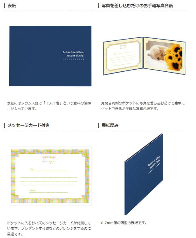 手軽に使える写真台紙です。ポケットに写真を差し込むだけなので、入れ替えも簡単にできます。