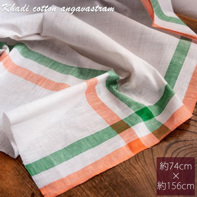 【送料無料】 【約156cm×約74cm】インドの手紡ぎ布 カディコットンのストール / アンガヴァストラム ガムチャ 万能布 ギフト アジア キッチンダスター 台布巾 ファブリック エスニック