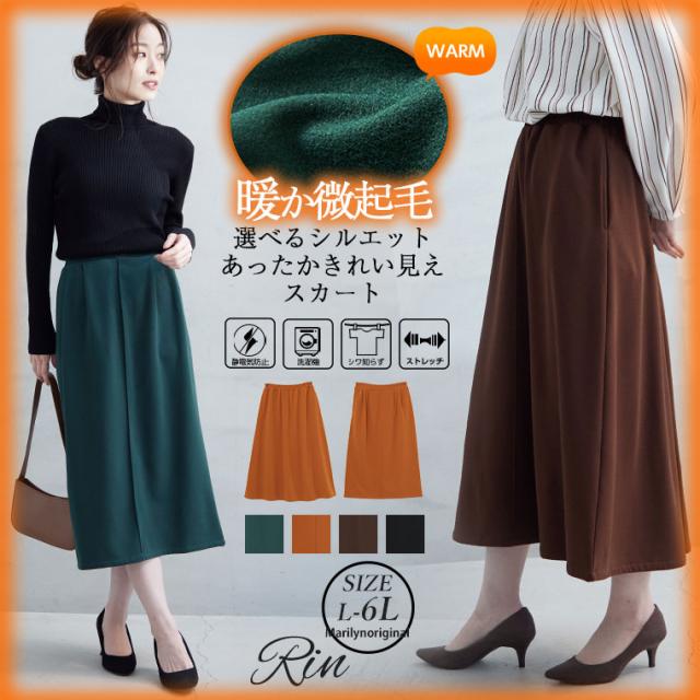 新作 大きいサイズ レディース スカート | Rin 選べるシルエット 静電防止 カットジョーゼット 裏起毛スカート(フレア/ナロー) [438186] LL 3L 4L 5L 6L