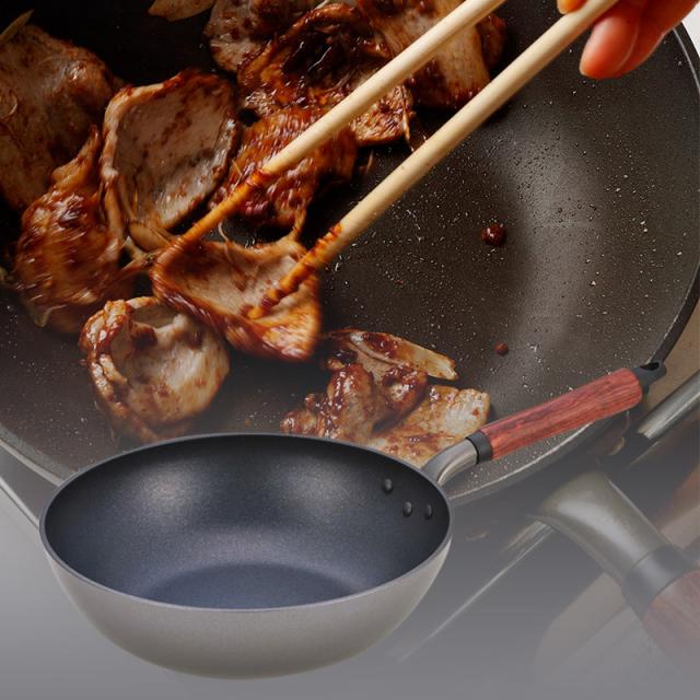 1990年に来日した料理家のウー・ウェンさんが開発したフライパン。家庭での使いやすさと耐久性にこだわり、何度もテストを重ねて開発した自信作です。鋳物の街として400年以上の歴史を持つ富山県高岡市で製造されています。