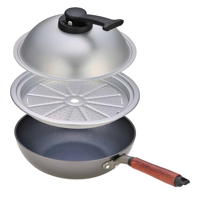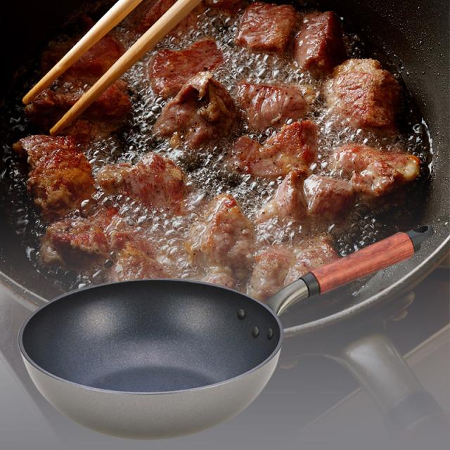 毎日の料理を快適にする深型フライパン『ウー・ウェンパン+ ガス火専用 24cm』。こびりつきにくく、お手入れも簡単です。