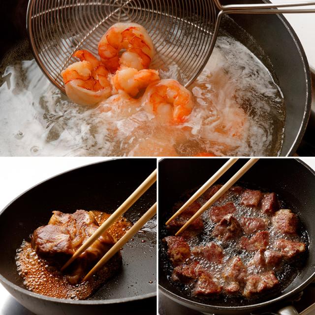 フライパンの基本である「炒める・焼く」に加え、十分な深さがあるので「茹でる・揚げる」ことも可能。これひとつで4種類の調理ができます。
