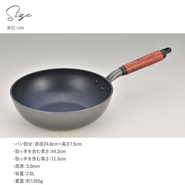 ウー・ウェンパン+ ガス火専用 24cm 本体のみ フライパン深型/軽量/日本製/テフロン/くっつかない/焦げ付きにくい/おしゃれ/揚げ物/買い替え/