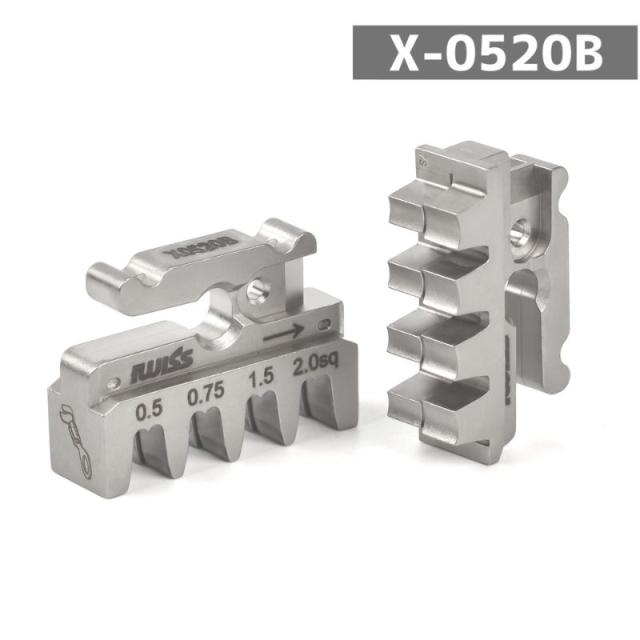 エーモン社丸型ギボシ端子、平型ギボシ端子#250・#187、ダイナミックコネクタD-3000シリーズD-3コンタクト2L・3Lに対応 圧着ダイス(4サイズ):0.5sq、0.75sq、1.5sq、2.0sq 特長:
