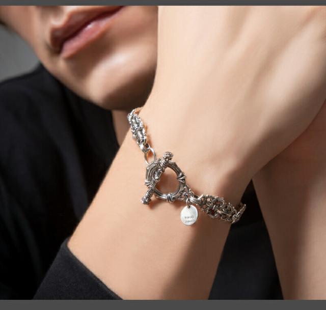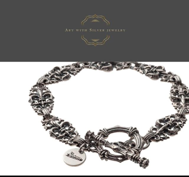 | 仕様 | フルール・ド・リスは、アヤメの花を様式化した紋章図柄。チェーンはフルール・ド・リスをデザインにつなぎ合わせたTバーで留める形式のブレスレット。シルバー925製。程よい存在感で銀の輝きが美しい。服装にも合わせやすいサイズ感のブレスレット。アルテミスクラシックらしく随所に施されるレーヤード&唐草デザインが繊細。ぶら下がるサークルプレートにブランド刻印。 |