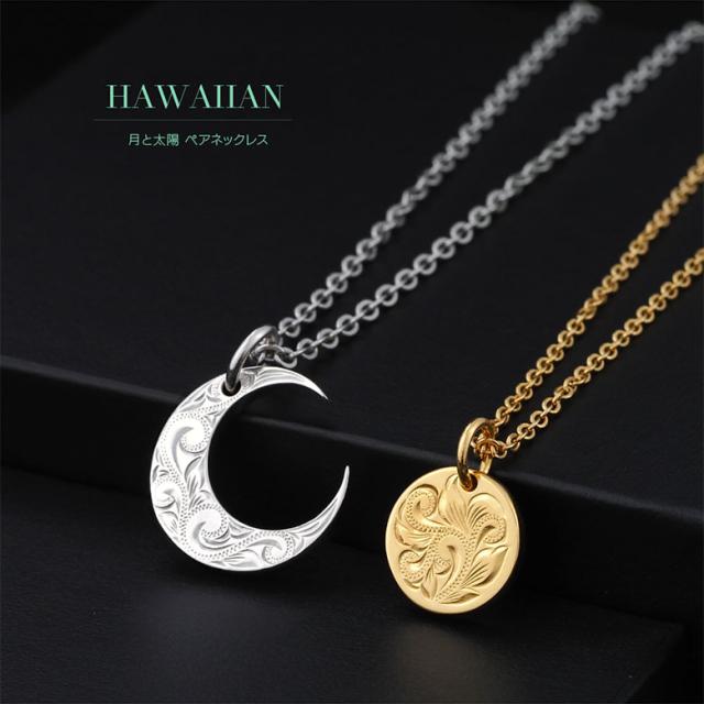 ペア ハワイアンジュエリー ネックレス 金属アレルギー対応 太陽と三日月 シルバー925 pe2231-pair