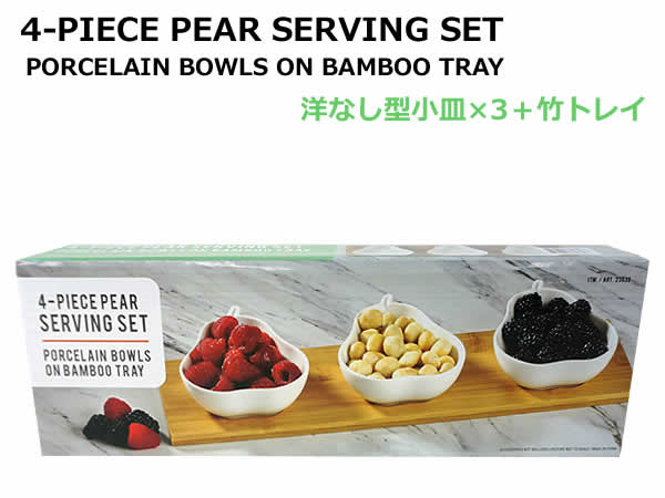 【送料無料】洋なし型 小皿3枚 竹製 トレイ サービングセット ボウル 小鉢 3皿 竹トレイ 4-PIECE APPLE SERVING SET 洋ナシ 洋梨 4ピース サービングトレイ 食器セット コストコ