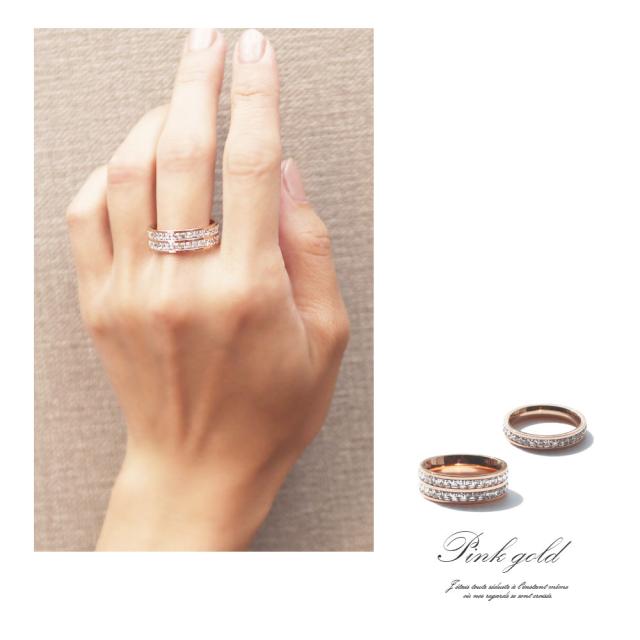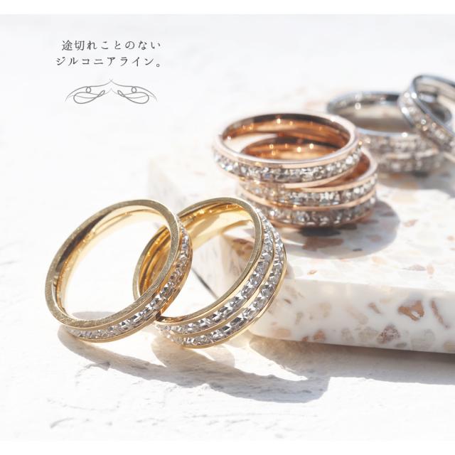 指輪 レディース つけっぱなし おしゃれ ステンレス 高見え 9号 かわいい 重ね付け 2連 メンズ 金属アレルギー対応 キュービックジルコニア キラキラ シンプル シルバー ゴールド ピンクゴール 金 銀 色 ノンブランド 太い 太め 細い 華奢 エタニティ
