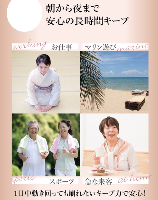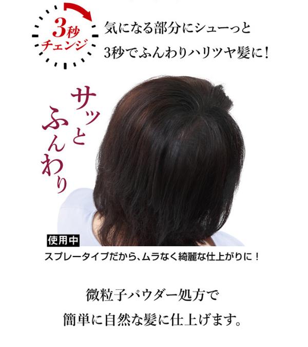 髪がふんわりすると自信がもてる!ボリュームアップ・コシと白髪をサポート!長時間キープでお出掛けの日も安心!雨、汗に負けないウォータープルーフ処方。風にも強く、スタイリング崩さない!ヒト幹細胞培養液配合。