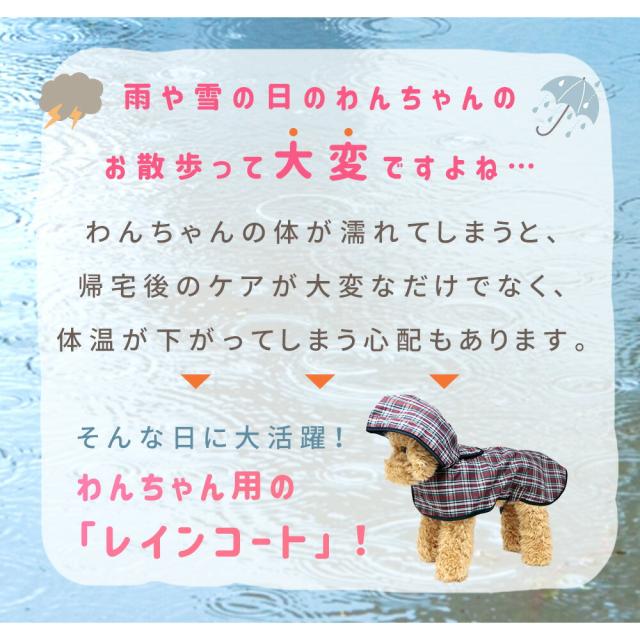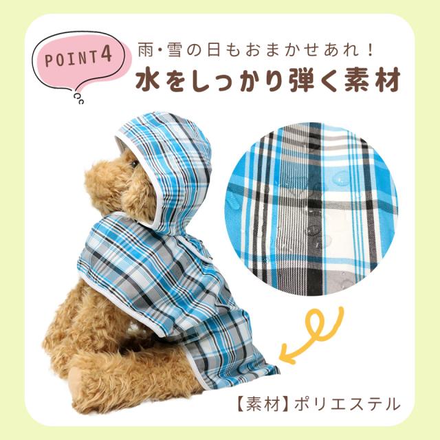 レインコート/犬/チェック柄/フード付き/防水/中型犬/小型犬/撥水/着せやすい/ペット/ペット用/レインウェア/リード穴/犬用/散歩/ワンちゃん/犬用品/ペット用品/カッパ/雨具/雨の日/おしゃれ/ペット服/衣装/ポンチョ/帽子付き/帽子/フード/袖なし/そでなし/女の子/男の子/アウトドア/雑貨/雪/ファッション/贈り物/プレゼント/チワワ/トイプードル/パグ/柴犬/チェック/犬の服/雨対策/雪対策/サイズ調節/サイズ調整/マジックテープ/マジックテープ式/お散歩/