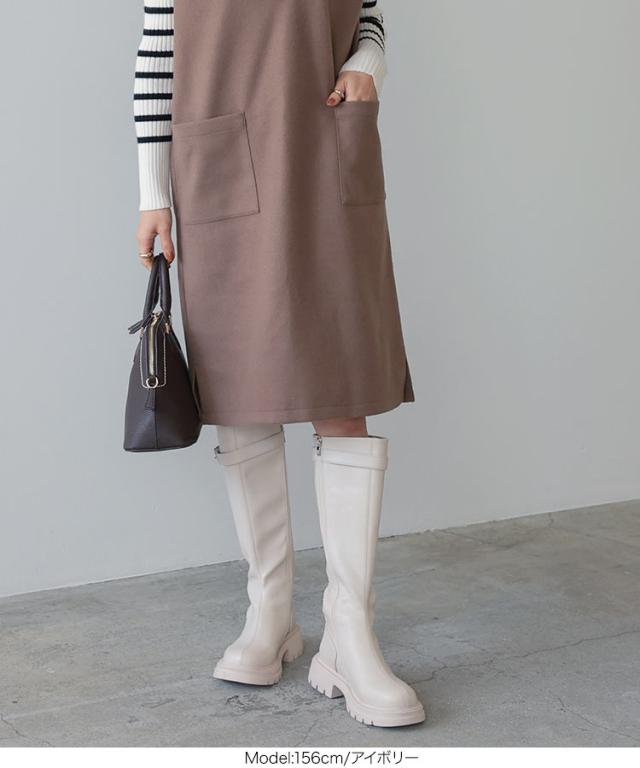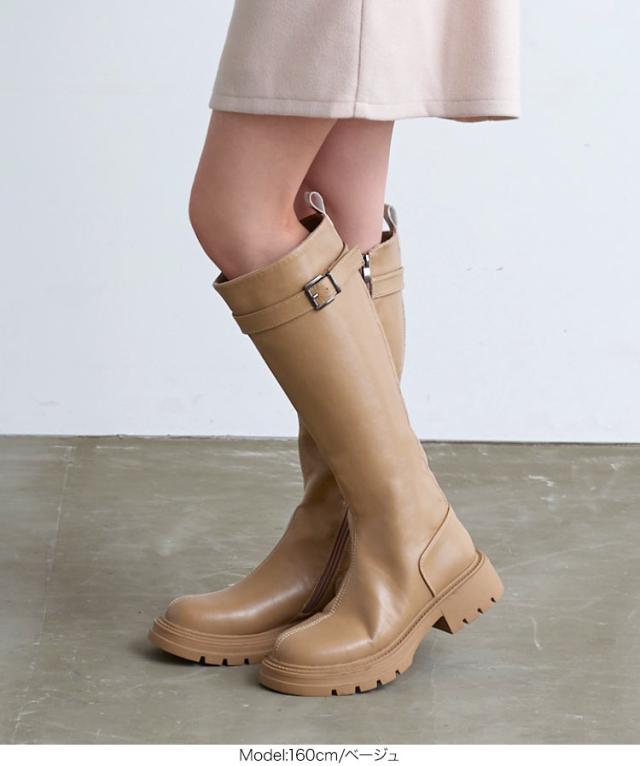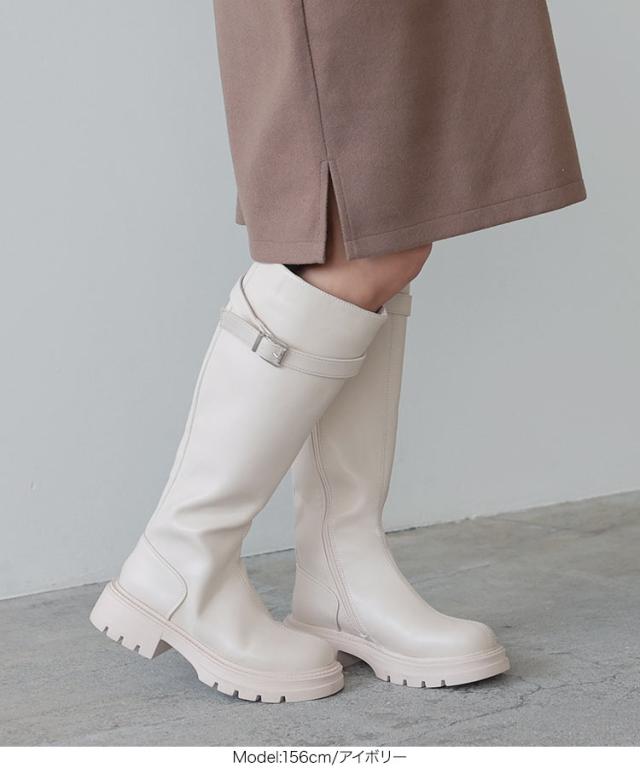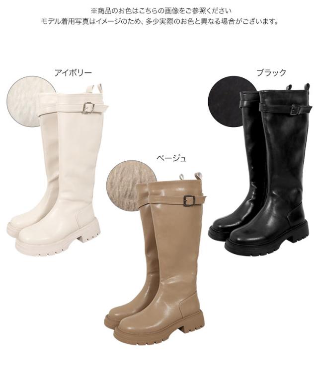 春新作 [ 裏起毛 ] チェルシーベルトロングブーツ I2525 入荷済 レディース 厚底 チェルシー ベルト ロング ブール 裏起毛 防寒