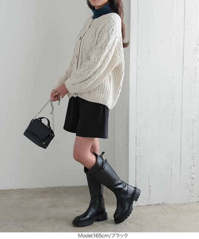 見た目はブーツインもできるストレートロングなベルトブーツで、底にもボリュームがあるタンクソールのブーツ。内側ジップを開くと裏起毛で中までしっかり暖かい。タイツ合わせやショートボトムとも相性がよくミニスカートやワンピース合わせにもおすすめです。【素材・サイズ感】春まで長く使えるカラー展開。※キャンセル/変更不可※お届けまでの日程について