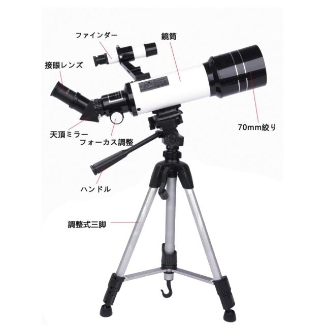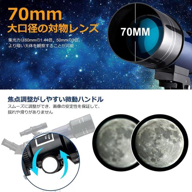 16-120倍 初心者用 子供用 天体望遠鏡 70mm大口径 400mm焦点距離 天体観測用望遠鏡 集光力は69%アップ 暗い天体 遠い惑星