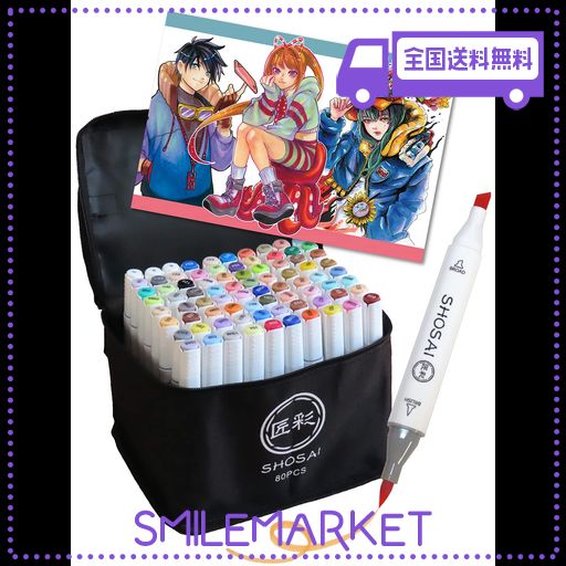 匠彩 イラストマーカー プロ絵師監修72色80本マーカーペン 筆タイプ アルコールマーカー セット