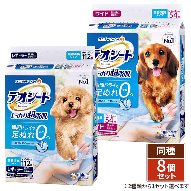 [2種類から1セット選択]ペットシーツ デオシート しっかり 超吸収 無香消臭タイプ レギュラー112枚入り×8袋 ワイド54枚入り×8袋 ユニ・チャーム ペット 大容量 まとめ買い 超吸収 無香 消臭