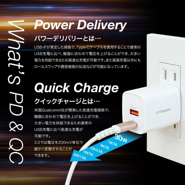 | パワーデリバリーとはUSB-IFが設定した規格で、Type-Cケーブルを使用する事で通常のUSB充電に比べ高速での充電が可能です。 |