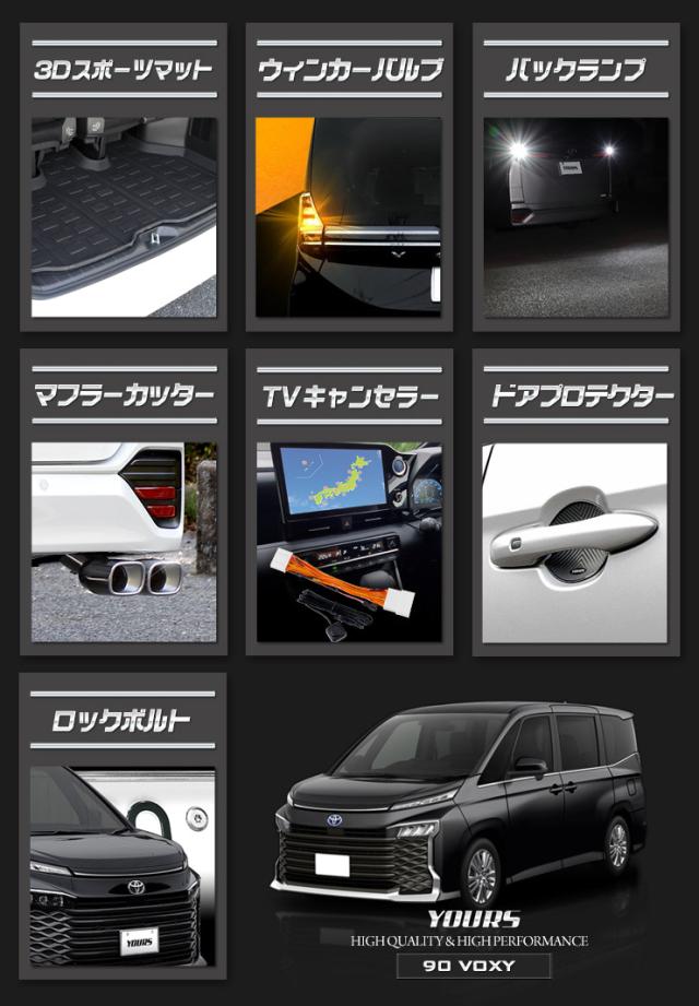 [対象商品タイムセール10%OFF]90系 ヴォクシー専用 お得7点セット タイプ1 ウインカー バックランプ テレビキャンセラー 3Dスポーツマット マフラーカッター ドアプロテクター ロックボルト カスタム パーツ アクセサリー ドレスアップ