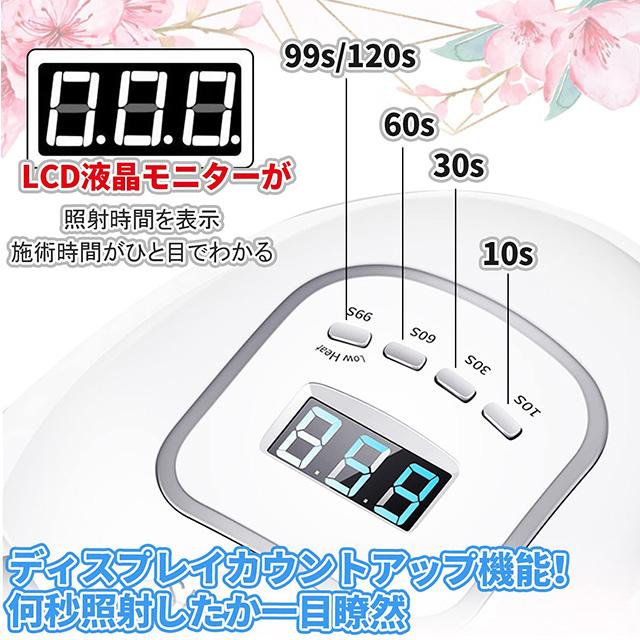 【自動センサー &四段階タイマー表示】:赤外線検知システムが搭載され、指先/足を感知すると、センサーが自動でオンになります。手を離すと自動的に消灯します。このゲルネイルライトには、10秒/ 30秒/ 60秒/ 99秒(低熱モード)の時間設定があります。
