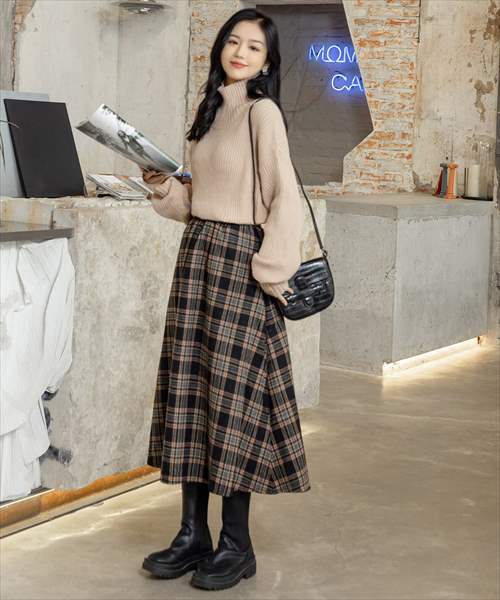 レディース ウール風クラシックチェック柄スカート