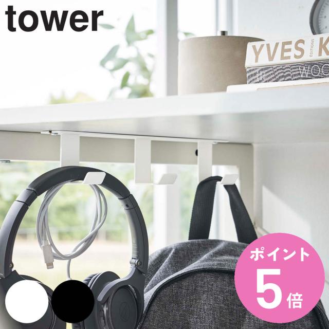 tower デスク下フック3連 タワー ( 山崎実業 タワーシリーズ フック 机 デスク収納 バッグハンガー 鞄 バッグ リュック 掛け 引っ掛け収納 吊り下げフック ケーブル コード 幅広 yamazaki tower 山崎実業tower 山崎実業)