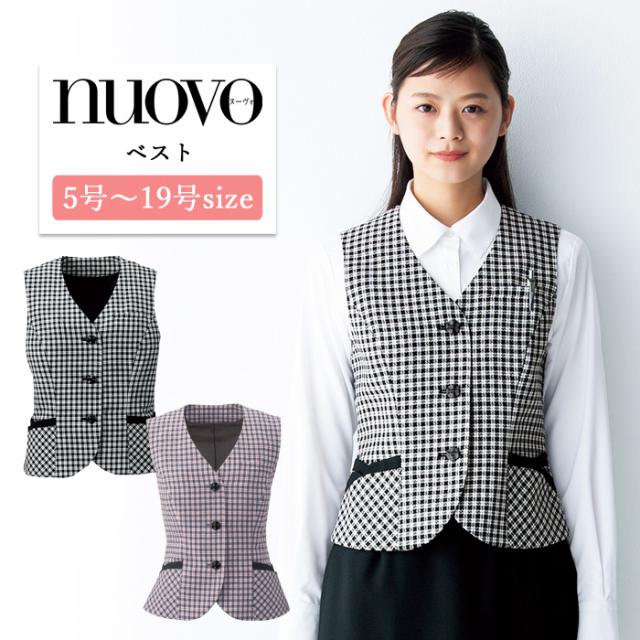 事務服 ベスト レディース スーツ 制服 nuovo 秋冬 春 FOLK ベスト【送料無料】クローバーチェック ピンク おしゃれ 女性 医療事務 受付 接客 冠婚葬祭 仕事 セレモニー オフィス フォーマル ポケット付き かわいい おうちで洗える