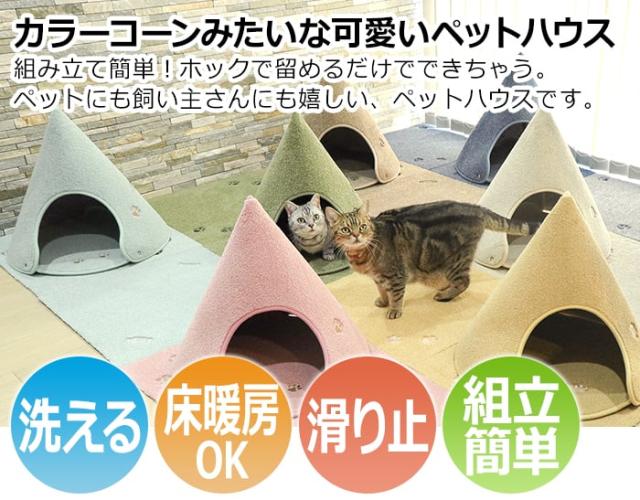 ペットハウス 猫 犬 洗える ペット用 ハウス 約W45×D47×H45cm ラグタス コーン Mサイズ (R) キャットハウス ドッグハウス おしゃれ 滑り止め マット 組み立て 簡単設置 床暖房対応 Rugtasu Cone 洗濯機OK コーン型 軽い ふかふか カットパイル 引っ越し 新生活 ペットマット