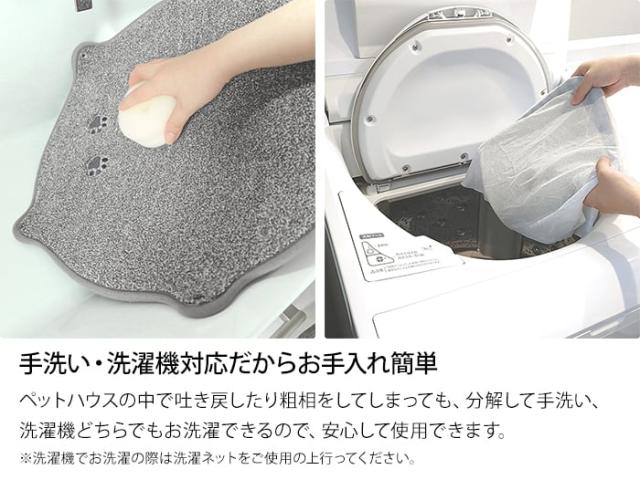 ペットハウスの中で吐き戻したり粗相をしてしまっても、分解して手洗い、洗濯機どちらでもお洗濯できるので、安心して使用できます。