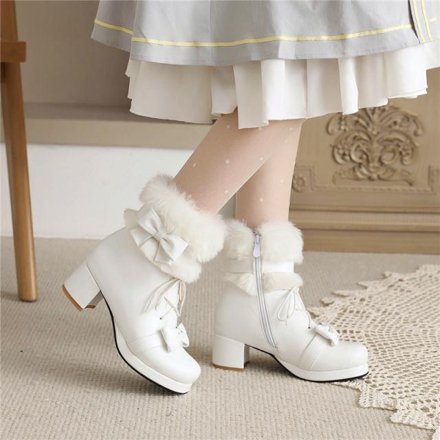 姫系 革靴 秋冬 ロリータ 靴 レディース ハイヒール コスプレ ストラップ パンプス お嬢様風 ロリータ靴 可愛い おしゃれ フ