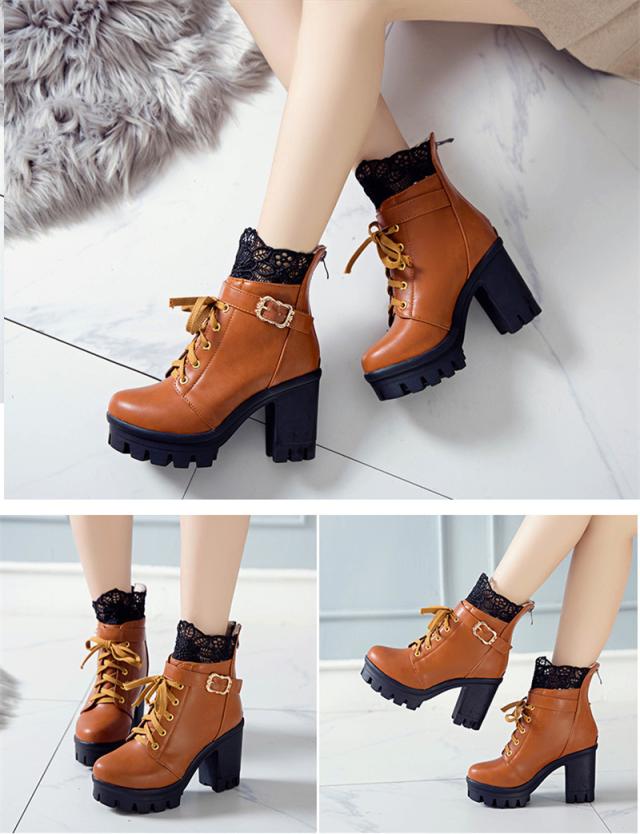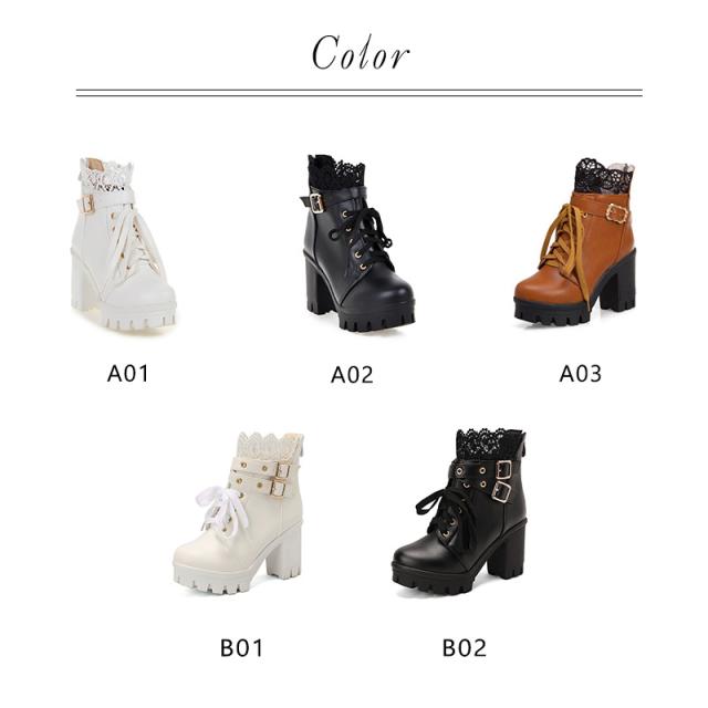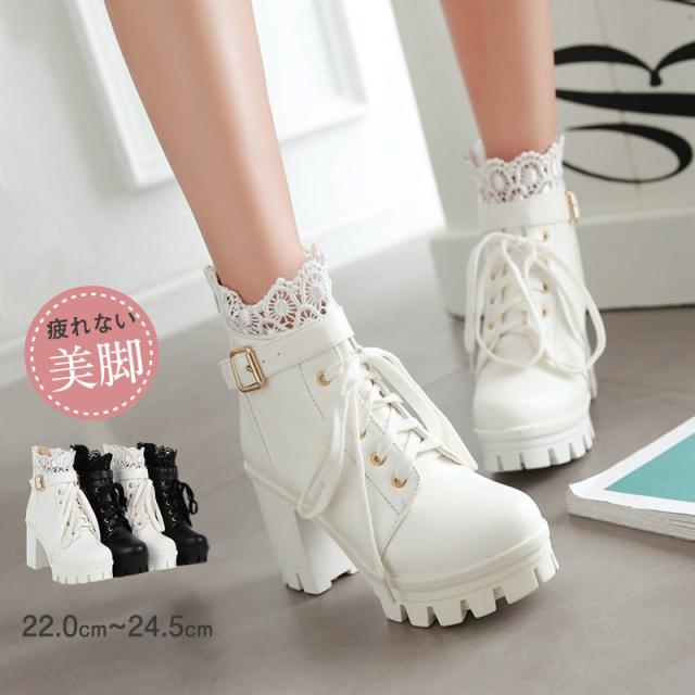 姫系 革靴 秋冬 ロリータ 靴 レディース ブーツ ショートブーツ 編み上げ レースアップ かわいい ガーリー ロリータ 厚底 お