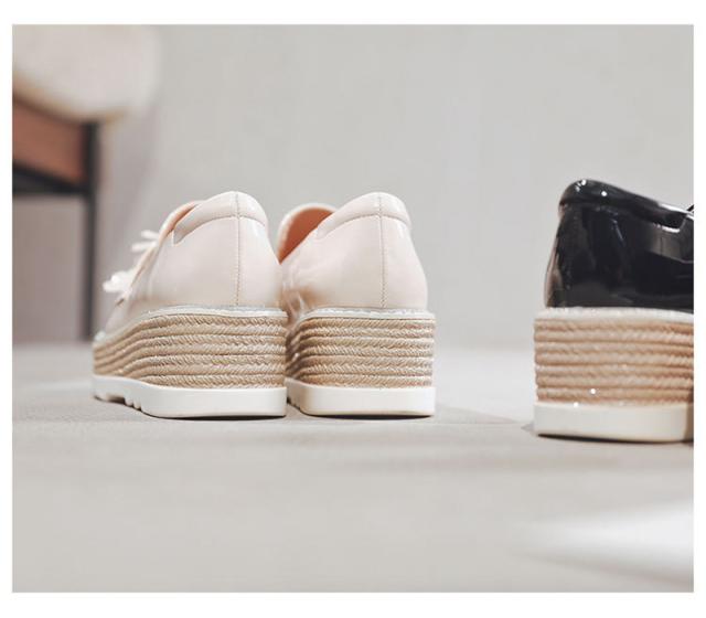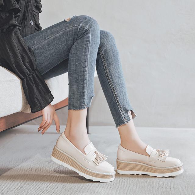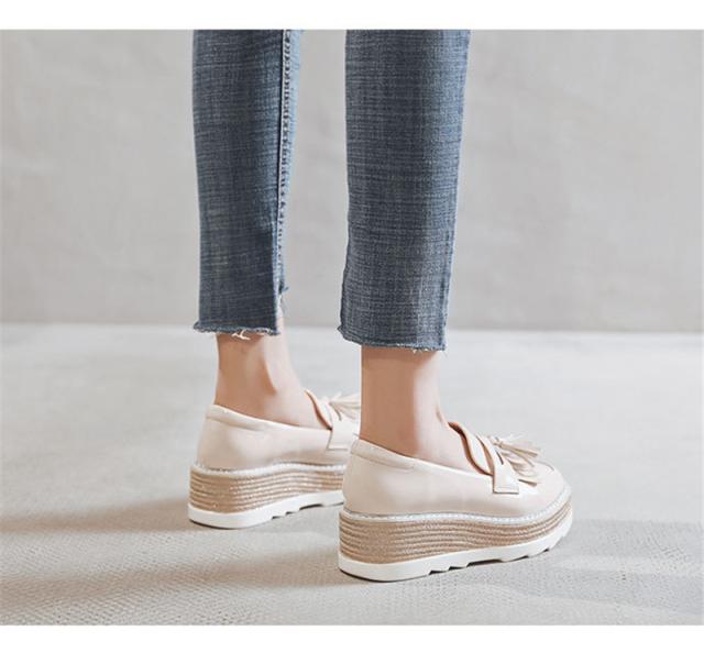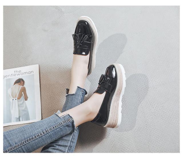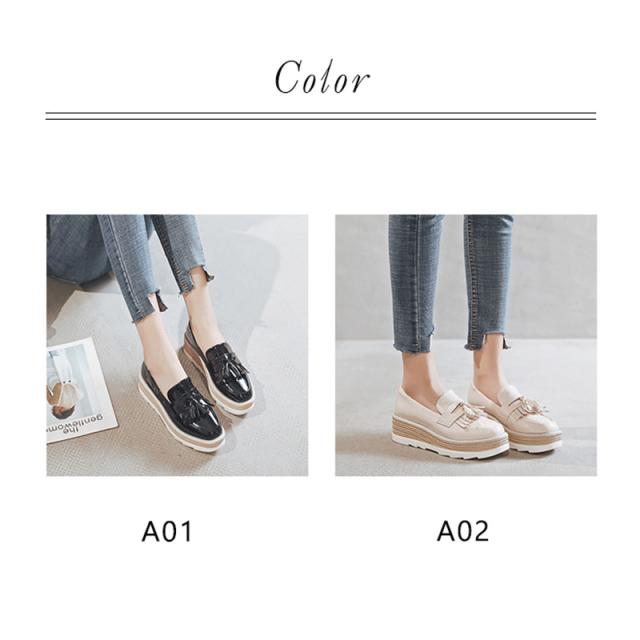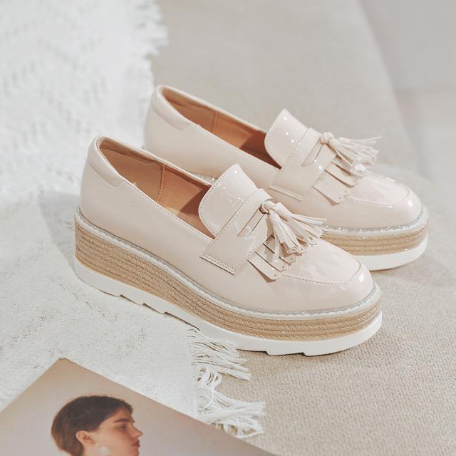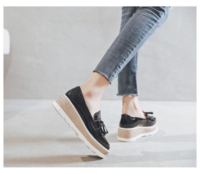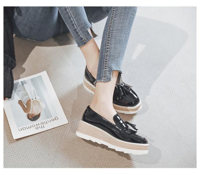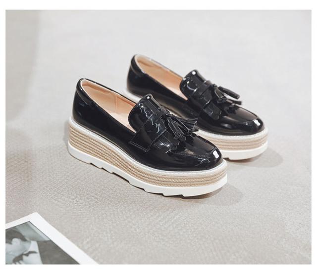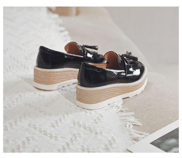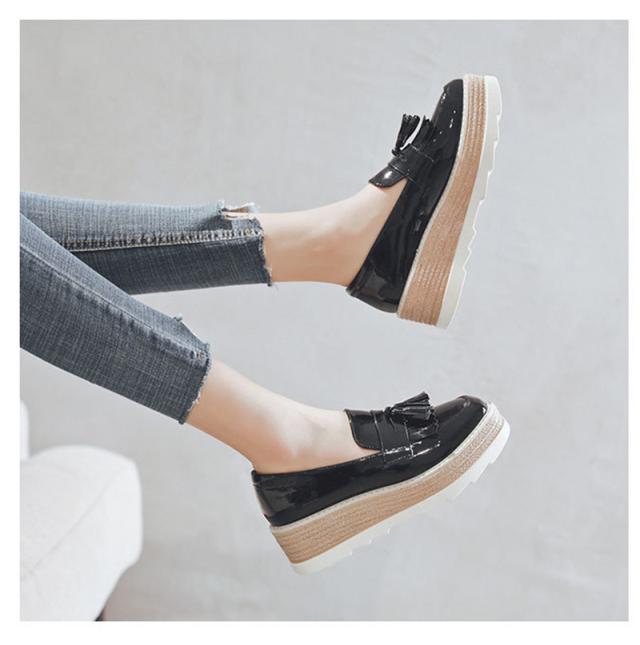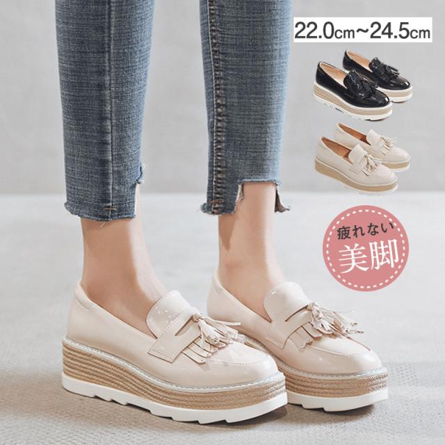 ローファー 革靴 レディース パンプス スリッポン 前厚プラットフォーム クッションイ ンソール エナメル靴 厚底 ウェッジ タッ
