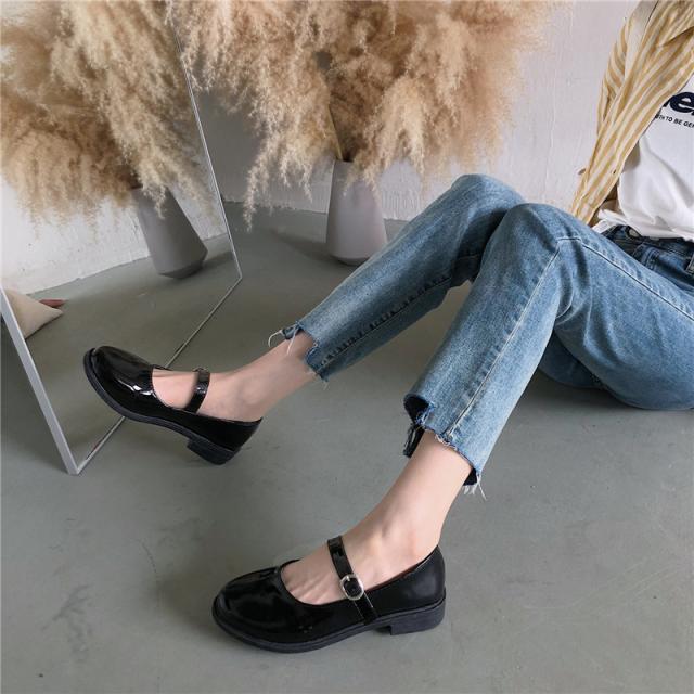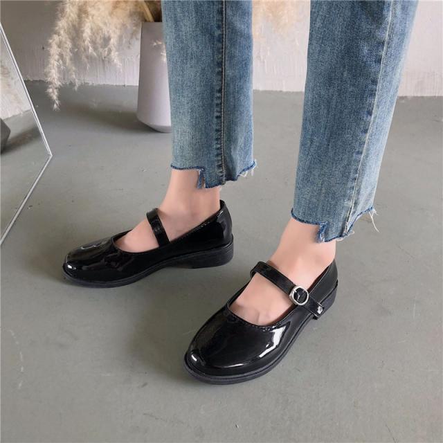 ローファー 革靴 レディース パンプス ストラップ 厚底 3.5cmヒール 黒 レザー エナメル ブラック おしゃれ ファッション