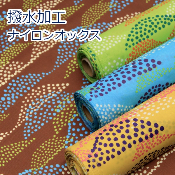 【10cm単位価格】 波 山 ドット 幾何学模様 撥水加工 ナイロンオックス 生地 布 ナイロン100% 約115cm幅 ゆうパケット2m対応