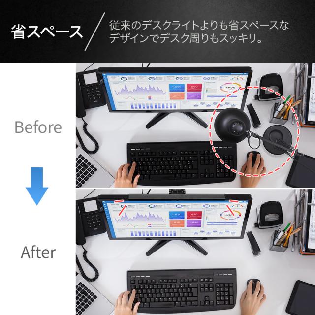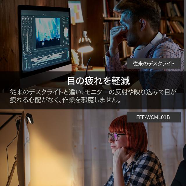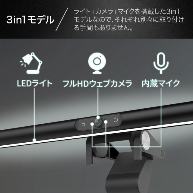 モニターライト デスクライト LED ウェブカメラ WEBカメラ マイク内蔵×2 フルHDカメラ 無段階調光 3段階色温度調整 USB給電 FFF-WCML01B