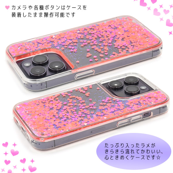 スマホケース iPhone14Pro用 ラメが流れる トキメキハートケース 装着簡単 スマホカバー 背面 保護カバー ファンシー 可愛い 保護カバー オシャレ iPhoneケース アイフォンケース 携帯カバー 携帯ケース お洒落 背面保護 バックカバー SoftBank au docomo おしゃれ 個性的