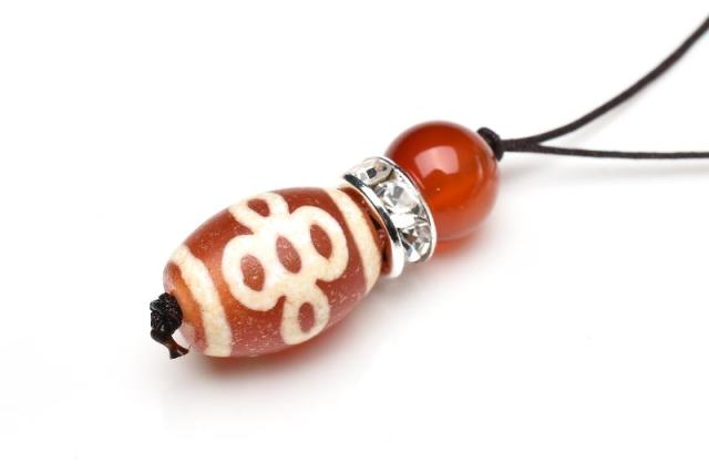 | 特徴・意味 | 稲光のような模様と、五眼の模様が浮かび上がる天珠です。閃電とは豊かな実りをもたらす稲光を意味し、五眼は東・西・南・北・中央の五方位の御仏からの守護を受けられることを意味しています。※天然の瑪瑙を使用しているため、サイズにバラつきがございます。記載サイズは平均サイズとしてご参考ください。裏側のデザインがロットによって異なる場合がございます。 |