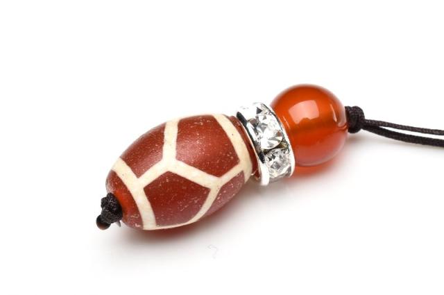 亀甲天珠 カーネリアン 13-14x10-11(丸玉8)mm ストラップ 1個売り 金運・仕事運_PR3399-2