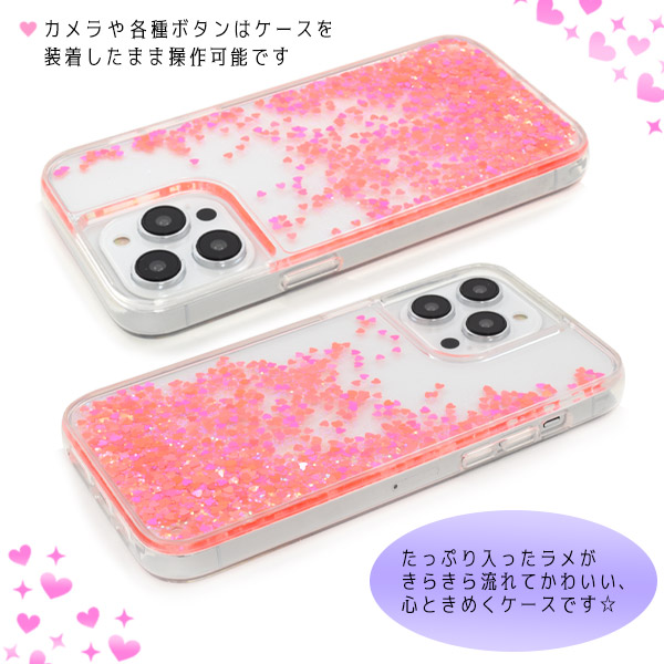 スマホケース iPhone14ProMax ラメが流れる トキメキハートケース 装着簡単 スマホカバー 背面 保護カバー ファンシー 可愛い おしゃれ 保護カバー オシャレ iPhoneケース アイフォンケース 携帯カバー 携帯ケース お洒落 背面保護 バックカバー SoftBank au docomo