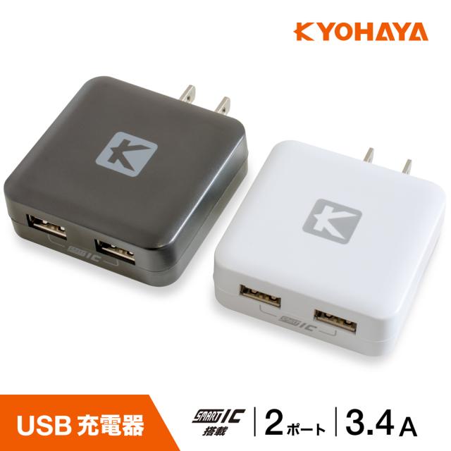 USB充電器 2ポート iPhone Android 3.4A 2台同時 急速充電 スマートフォン iPhone AQUOS Xperia 対応 CHARGE GEAR FLAT 3 JKIQ3400