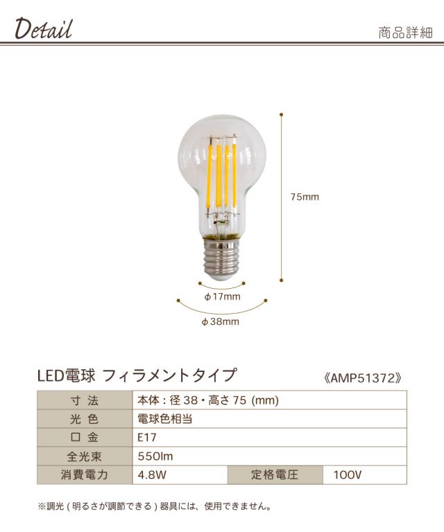 【Ampoule】 LED電球 E17 フィラメント LEDミニクリプトン球 LED 電球 おしゃれ 550lm 4.8W ミニ エコ 長寿命 低発熱 替え電球 インテリア AMP51372