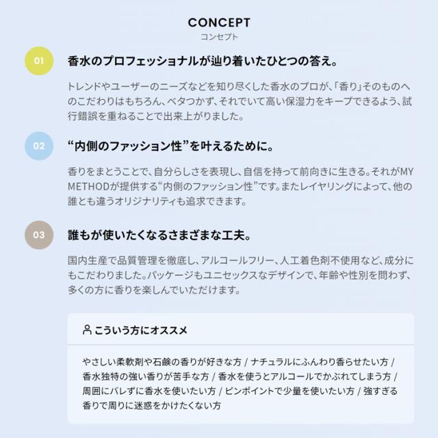 ●フレグランス商品は、シルク・薄い布地や白または淡い色の衣服には、シミになることがありますので、直接おつけにならないでください。