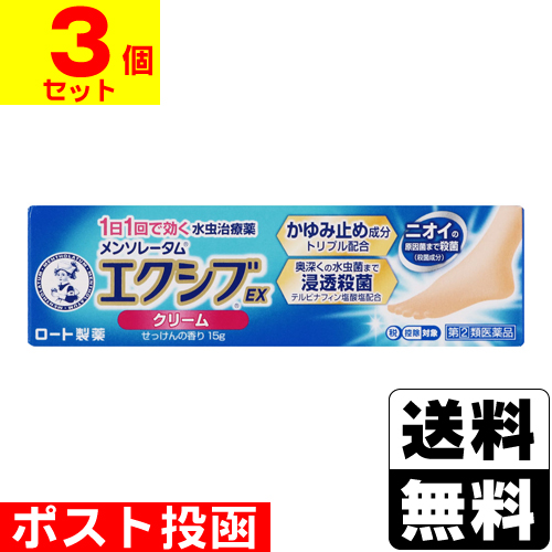 【第(2)類医薬品】【セ税】■ポスト投函■[ロート製薬]メンソレータム エクシブEX クリーム 15g【3個セット】