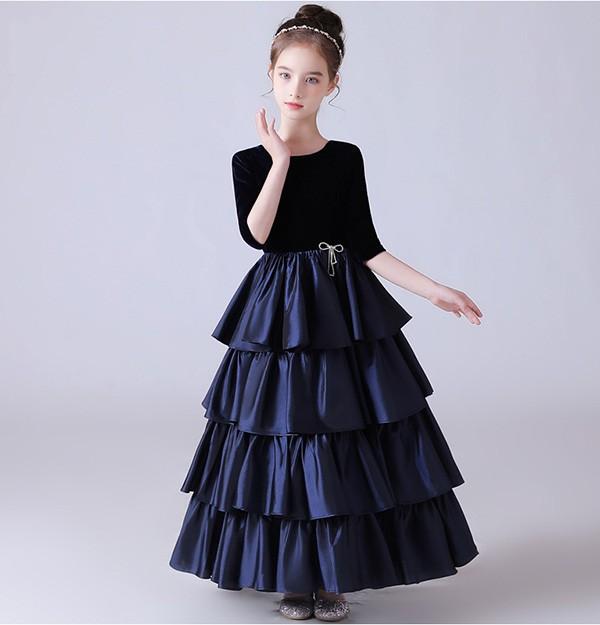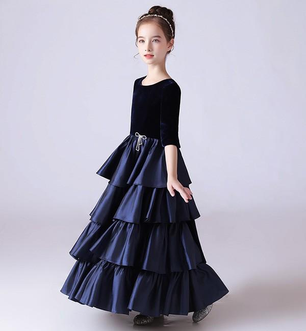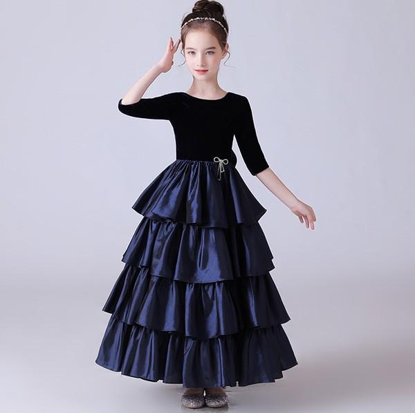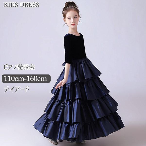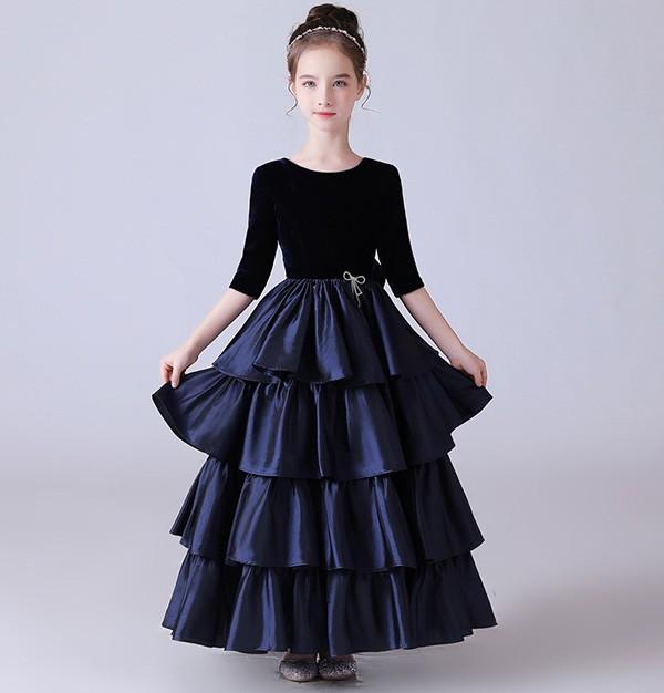 【送料無料】子供ドレス ワンピース ロングドレス ピアノ発表会 ティアード 袖付き 子供 ドレス 女の子 フォーマルドレス パーティードレス 結婚式 七五三