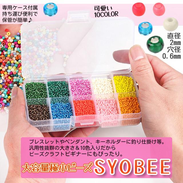 ビーズ アクセサリー 手作り キット 大容量 セット 約9000個 10色 極小 円形 直径 2mm 穴径 0.6mm ガラス製 ケース 付き ブレスレット ネックレス キーホルダー 釣り具 パーツ クラフト DIY 手芸 ハンドメイド プレゼント SYOBEE 送料無料
